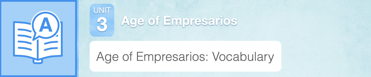 Overview In this experience, students interact with vocabulary words that they will encounter throughout Unit 3: Age of Empresarios. Estimated duration: 30 minutes Vocabulary words: Objective