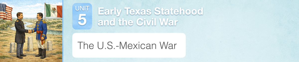 Overview In this experience, students look at a print entitled Mexican News, and write a headline for a newspaper. Then they watch a video about the causes of the U.S.-Mexican War and take notes in a graphic organizer. Next they analyze the outcomes of the war for both the United States and Mexico. Finally they compare maps of the United States in 1848 and 1850 to examine the change in Texas borders, and they draw an outline of Texas today. If you have access to leveled readers about the U.S.-Mexican War, assign them to the students in parallel to this experience. Estimated duration: 35-45 minutes Vocabulary words: Objectives