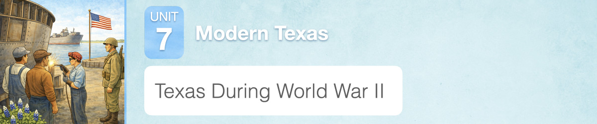 In 1939, Germany invaded Poland, and World War II began. At first, the United States did not join the fighting. Then, on December 7, 1941, Japan attacked the U.S. naval base at Pearl Harbor in Hawaii. After that attack, the United States entered World War II and became an important part of the Allied war effort. In this lesson, you will learn about the role Texans played in the war.