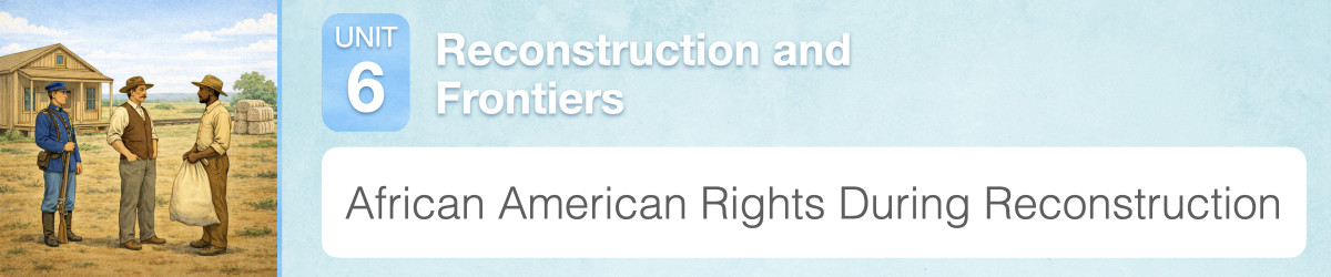 Among the people whose lives changed most after the Civil War were formerly enslaved people. Freedom brought new opportunities, but it also brought many challenges. People who had been enslaved had to seek education, find work, and build safe and stable lives for themselves and their families. In this experience, you will continue to learn about the challenges African Americans faced during Reconstruction.