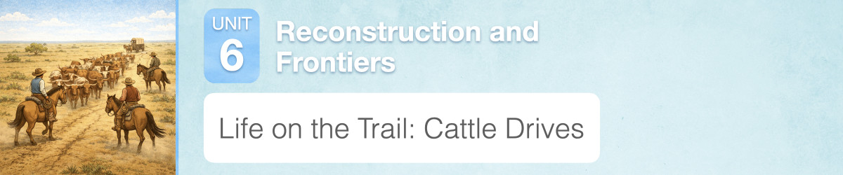 In the last lesson you learned about the development of ranching in Texas. In this lesson, you will learn how the cattle were sent to market and the impact of the cattle industry on Texas.