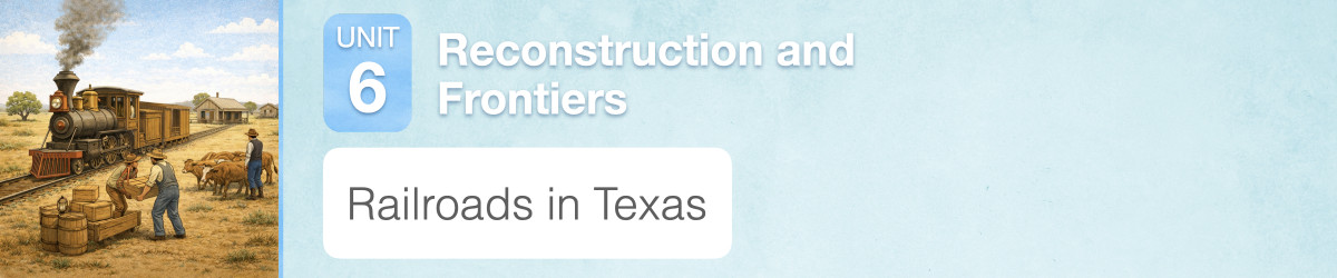 The construction of railroads contributed to the economic growth of Texas because railroads helped move people and goods across the state. They also helped businesses grow and led to the growth of new towns. The first tracks were laid before the Civil War, but the most significant growth of Texas railroads happened after the war. In this lesson, you will learn how railroads helped change life in Texas.