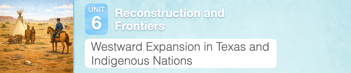 Following the Civil War, the Texas population continued to grow quickly. As the population expanded westward across the Texas frontier, conflict with indigenous people in Texas also continued to grow. In this lesson, you will learn about the U.S. government’s actions to control the indigenous nations in Texas.