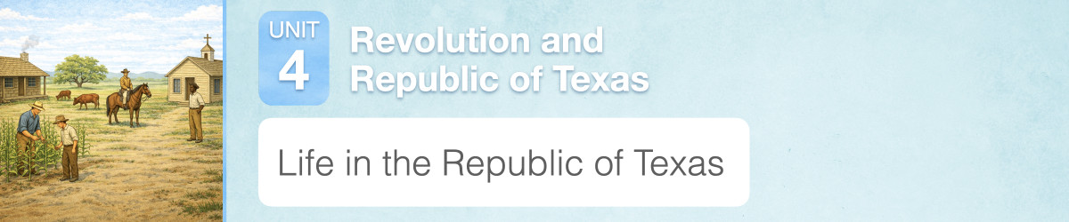 You have learned a lot about the political leaders of the Republic of Texas. What was life like for the settlers themselves? You will learn about their lives in this lesson.