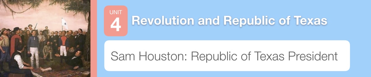 The Texans had won the Revolution and the Republic of Texas was now an independent country. But the problems did not end with the retreat of the Mexican Army. When Sam Houston was elected the first president of Texas, he was faced with many issues that made life in Texas very difficult. In this lesson you will learn about some of these issues and how Houston handled them.