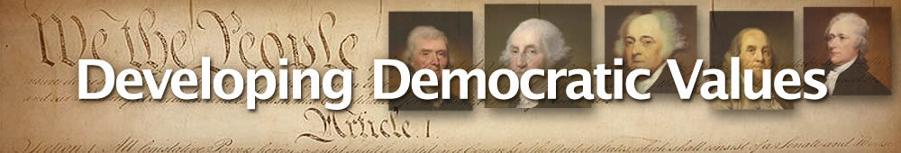In this experience, you will explore these core democratic values of our nation. First, you’ll consider core values in your classroom and school. Then you’ll examine text from three famous documents and see if you can identify fundamental beliefs that define and shape our nation. Next you’ll write definitions for each core value. Finally, you’ll create a visual representation of a democratic value in action.